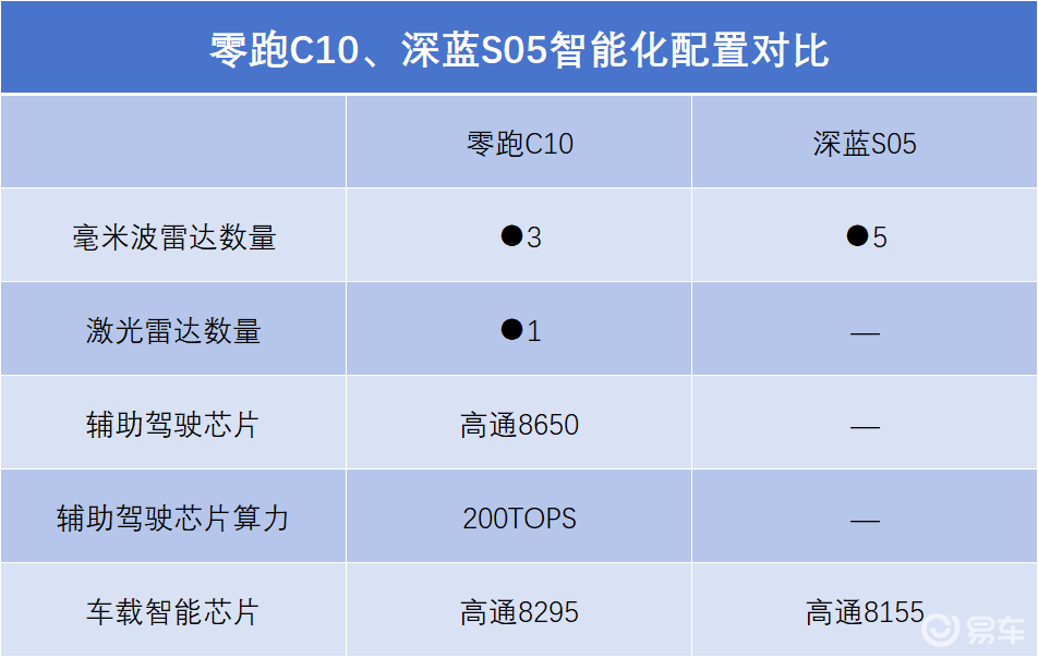 智能化配置是提升竞争力的关键,但咱们不仅要看眼下的智能化表现,更需要关注长期使用的体验。辅助驾驶层面,零跑C10采用了激光雷达的方案,同时还采用高通8650辅助驾驶芯片,由于感知硬件到位,整体的上限也比较高,如果后期OTA的话,整体的辅助驾驶能力还能继续提升。深蓝S05采用了毫米波雷达+视觉感知的方案,这也是同价位很常见的方案,目前确实还算够用,但由于感知能力有限,后续提升的空间也比较有限。