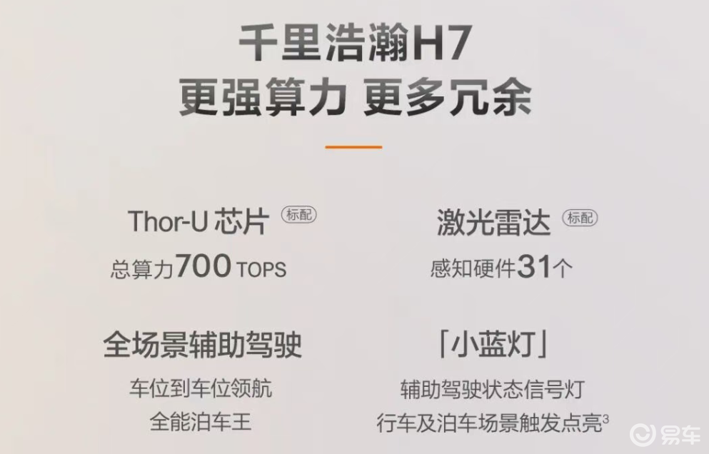 至于智能辅助驾驶系统,新款极氪001全系标配带激光雷达和31个感知硬件的千里浩瀚H7辅助驾驶系统,辅助驾驶计算平台搭载NVIDIA DRIVE Thor-U芯片(总算力700TOPS),标配辅助驾驶“小蓝灯”。