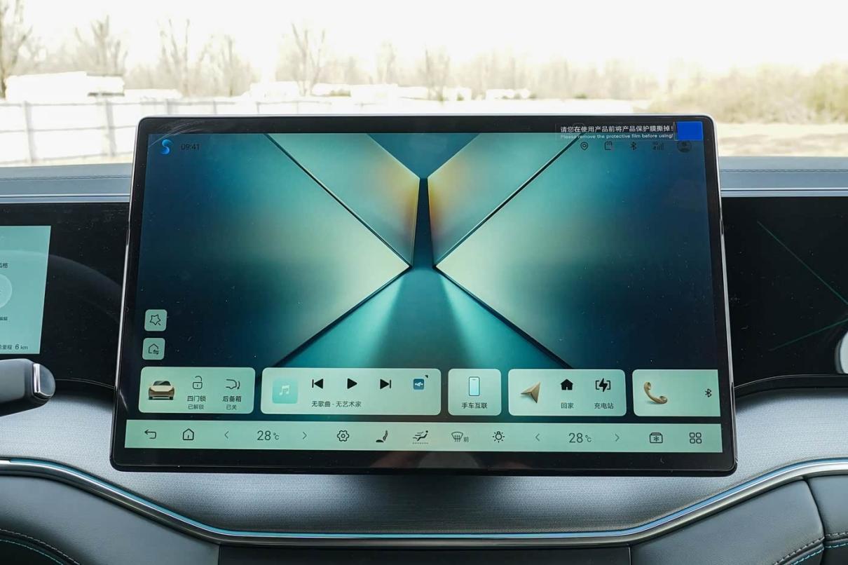 宋L的DiLink 100智能座舱有10.25+15.6英寸双屏,并配有26英寸HUD加以辅助,中控支持分屏显示,导航与娱乐互不干扰,并且支持HiCar/Carlink互联,生态丰富性很不错。