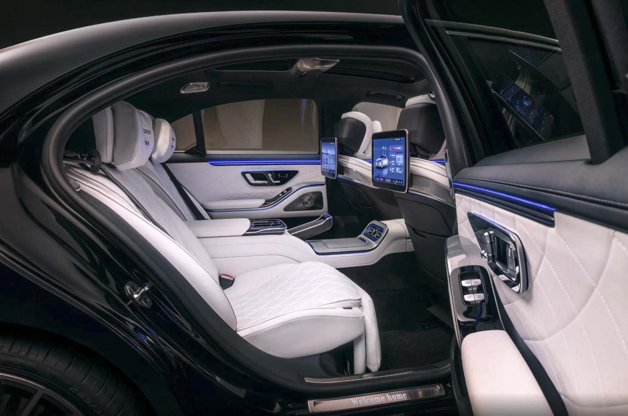 内饰部分,绝对是新款奔驰S级的最大亮点,改动幅度堪比换代,彻底打破了老款车型的内饰布局。最直观的变化就是取消了原有的纵置中控屏,取而代之的是奔驰最新的超长联屏,14.4英寸中控屏与12.3英寸副驾娱乐屏组成的MBUX超级屏,再搭配12.3英寸全液晶仪表盘,形成三屏联动的视觉效果,后排还新增了两块13.1英寸独立娱乐屏,前排操作与后排娱乐互不干扰,营造出极强的科技感。