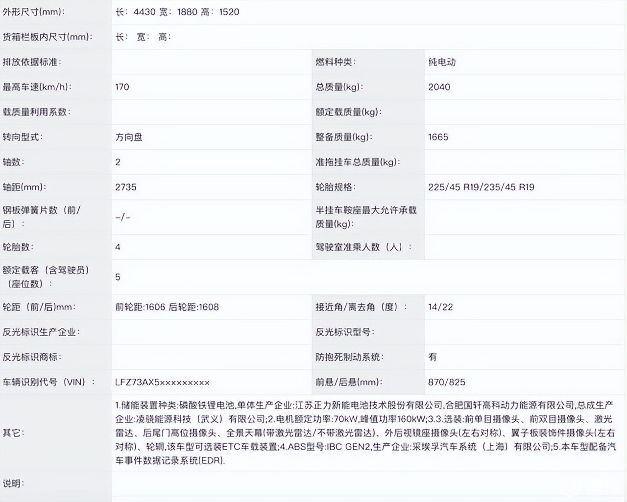 动力系统部分,根据工信部申报信息,零跑Lafa5搭载最大功率160千瓦的单电机系统,最高车速为170公里/小时。续航方面,新车将提供515公里和605公里两种续航版本,不过具体的测试工况尚未公布。