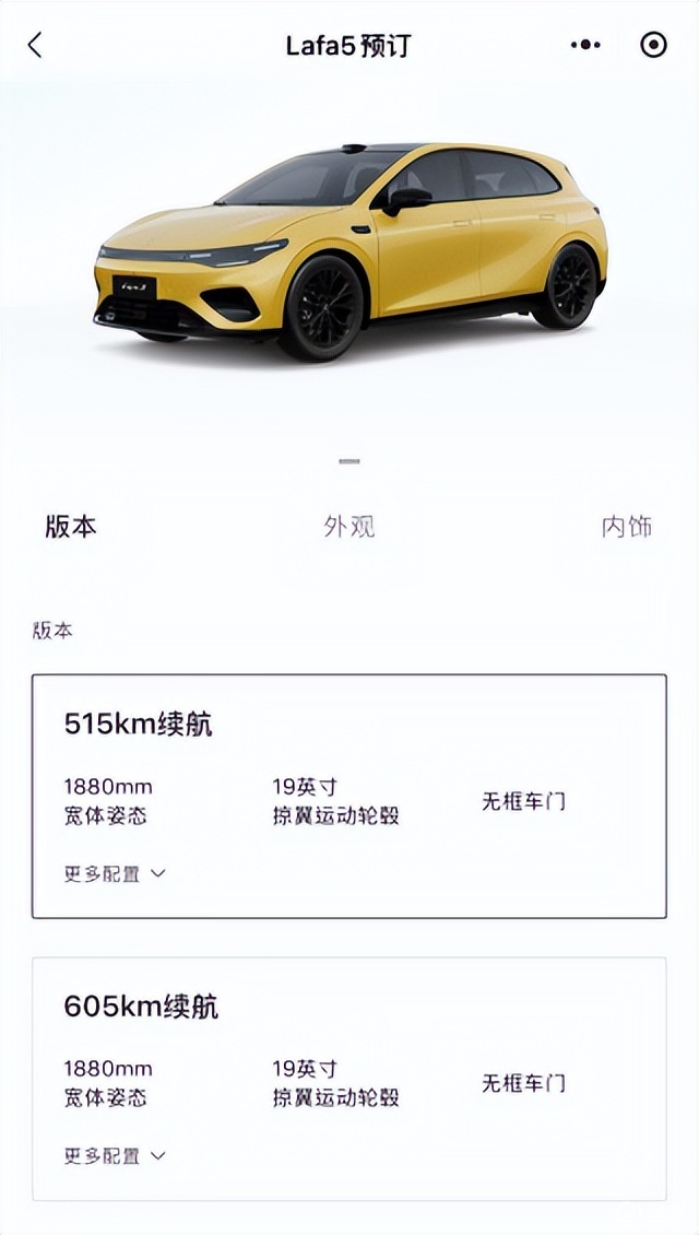 从产品定位来看,零跑Lafa5属于纯电动紧凑型车,车身尺寸长宽高分别为4430/1880/1520毫米,轴距为2735毫米;与同级别车型相比,其车身宽度数据较为突出,这可能为车内横向空间带来一定优势。