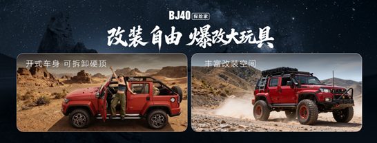 硬顶几步拆成敞篷,三把锁配双动力,这台国产越野车把改装玩出了新高度。北京汽车博物馆内,一台深色越野车在演员晋松的熟练操作下,仅用几分钟就“变身”为一台敞篷越野车。这是BJ40探险家上市发布会上的精彩一幕,也成为了这款新车最直观的卖点展示。
