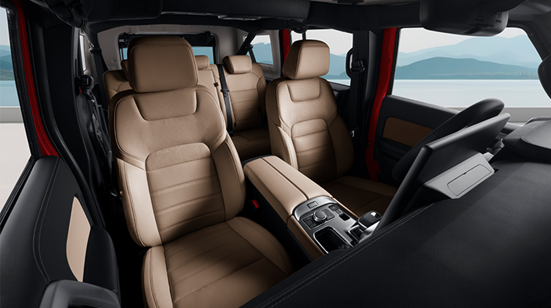 主副驾座椅全系标配通风和加热功能,主驾更配备6向电动调节与4向专属电动腰托。车内共设置5个户外充电接口,充分考虑了现代户外用电需求。