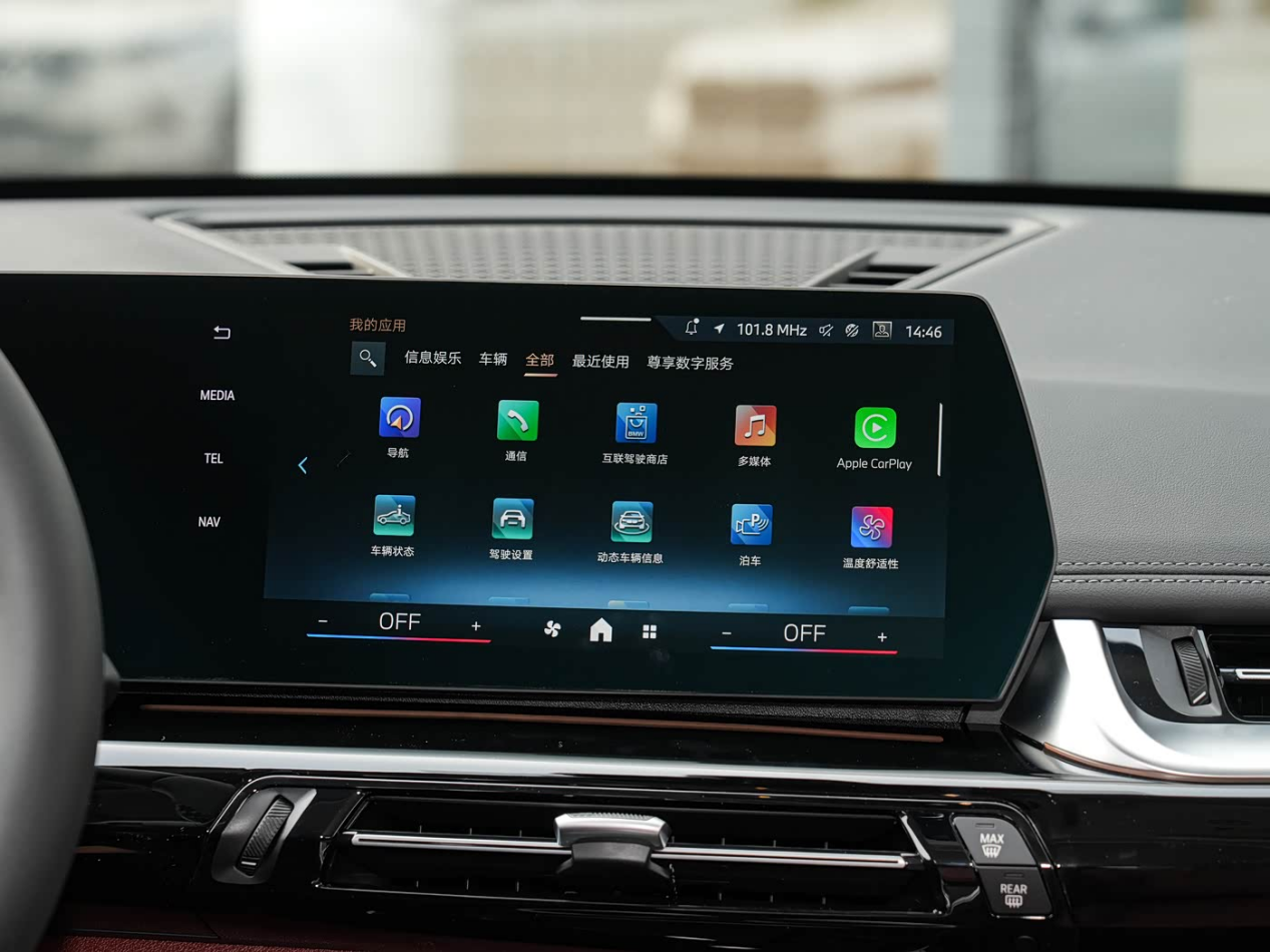 智能座舱的升级是2026款宝马X1最核心的改进所在。新车全系标配了5G网络,为车载互联体验带来了质的飞跃,意味着更快的网络速度、更低的延迟以及更稳定的连接,使得在线导航、实时路况、高清流媒体音乐与视频等服务的运行更为流畅高效。