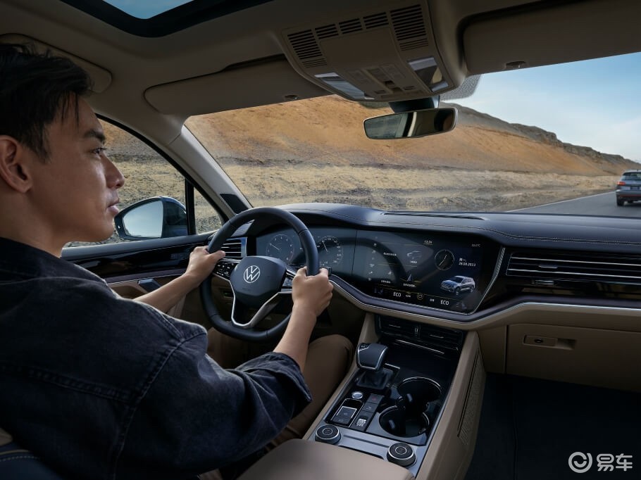 大众途锐同样搭载2.0T与3.0T涡轮增压发动机,3.0T V6发动机最大功率250kW,峰值扭矩450N·m,同样匹配8速手自一体变速箱,搭配4MOTION全时四驱系统与托森式差速器,官方零百加速5.9秒。其动力调校偏向线性平顺,起步沉稳,深踩油门后动力持续爆发,同时空气悬挂与后轮主动转向系统的配备,让其既能应对城市通勤,也能胜任轻度越野路况。