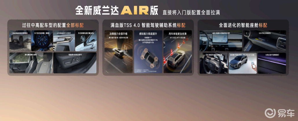 而全新威兰达AIR版最让人惊喜的一点,就是彻底打破了这个规矩。它没有用“丐版”车型玩数字游戏,反而做到了“入门即满配”,把咱们日常开车最需要的配置,全都做成了标配。
