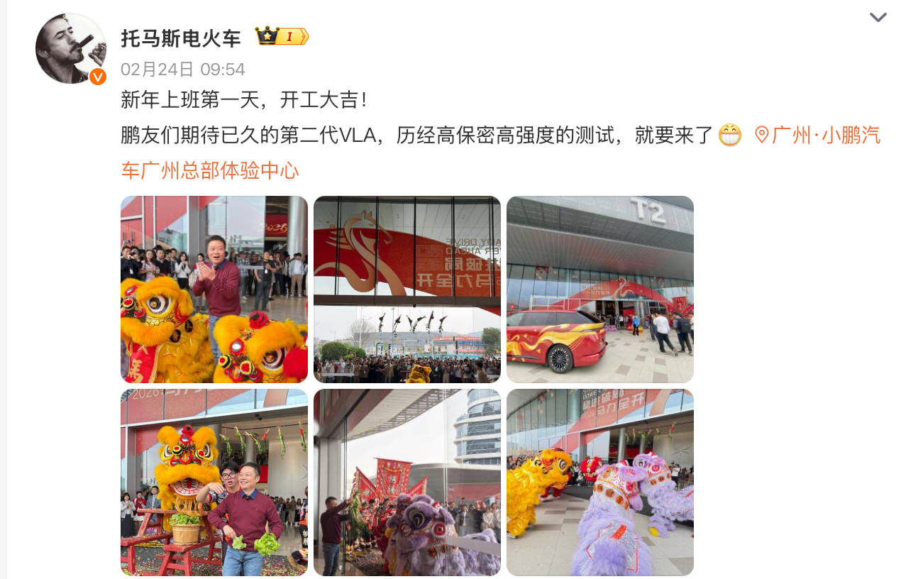 第二代VLA不是上一代系统的常规迭代,而是小鹏智驾从“规则驱动”转向“模型驱动”的底层重构,被官方定义为全球首个量产级物理世界大模型。何小鹏在2026年开工信中透露,自己春节一直在高频体验第二代VLA,评价其效果为“惊艳”“涌现”。他表示:“这是我们面向L4全自动驾驶时代交出的第一个版本,它正在让高阶智驾从‘极客尝鲜’变成像自动挡汽车一样,让每个家人都能轻松信赖的标配。”