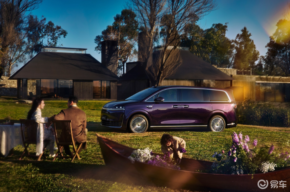 座舱内配备12.3英寸液晶仪表、双17.2英寸中控大屏及21.4英寸吸顶屏,二排零重力座椅支持45°迎宾、90°观景及180°旋转对坐模式。后备箱常规容积790L,盖板下隐藏94L储物盒,最大可拓展至1534L。