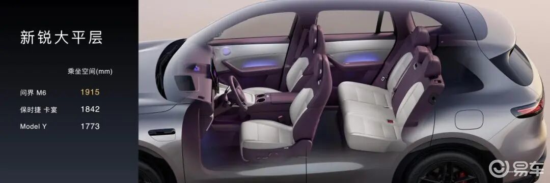 问界M6定位新锐中大型SUV,共推出4款车型,售价区间25.98-29.98万元。车身尺寸4960×1985×1736mm,轴距2950mm,风阻系数0.239,外观提供7款车色与黑曜运动套件。